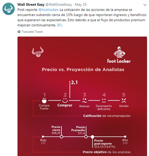 Acciones de Foot Locker alcanzaron su mejor precio desde junio de 2017