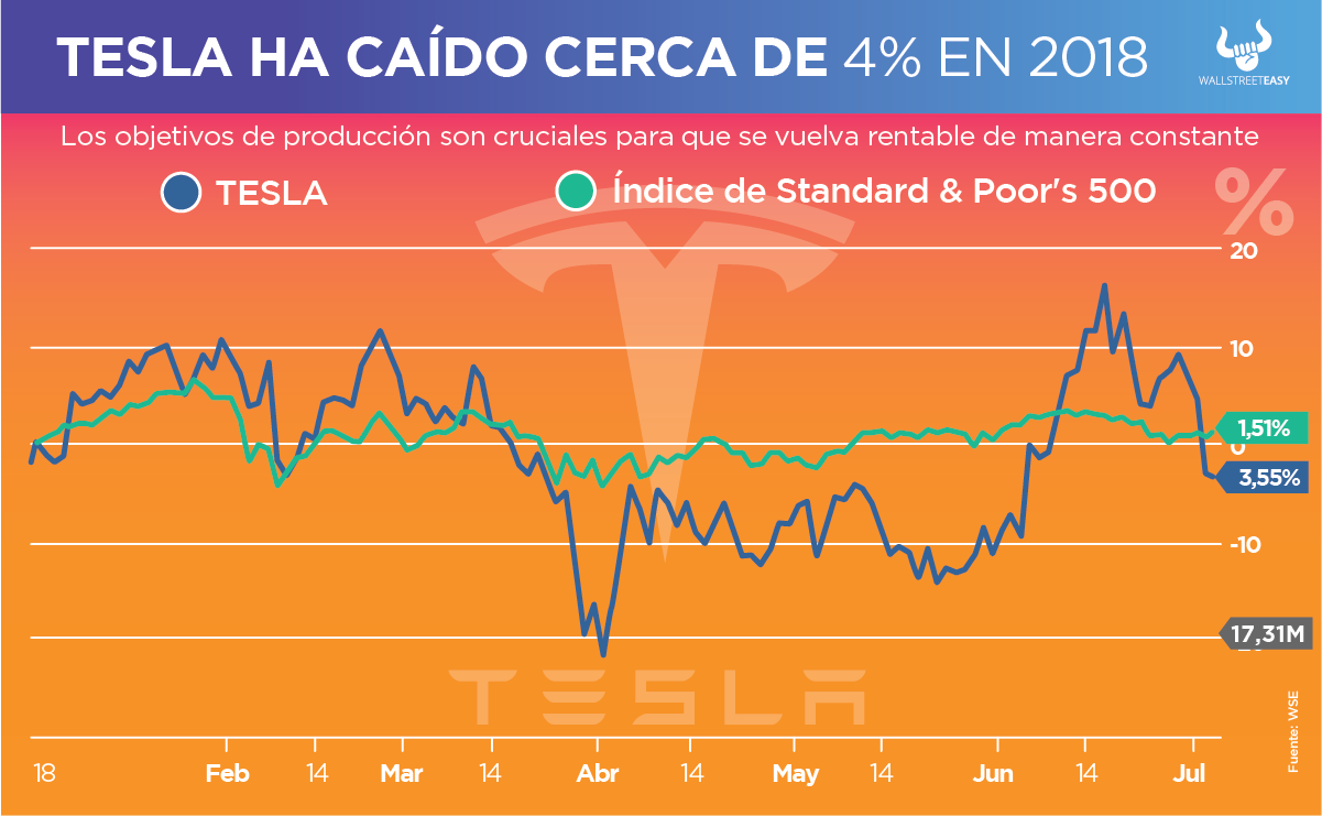 Si bien Tesla anunció el pasado lunes que alcanzó su objetivo de producir 8.000 vehículos a la semana, las acciones, en 2018, han caído cerca de 4%, mientras el Índice Standard & Poor's 500 ha avanzado alrededor de 2%, lo que muestra un distanciamiento entre el mercado y la compañía de Musk.