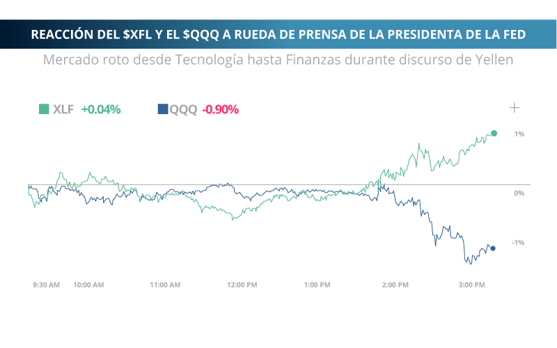 El dólar y Finanzas, los golpeados desde marzo, se recuperaron con el tono hawkish de Yellen, mientras que Servicios Públicos y Tecnología se vieron afectados.
