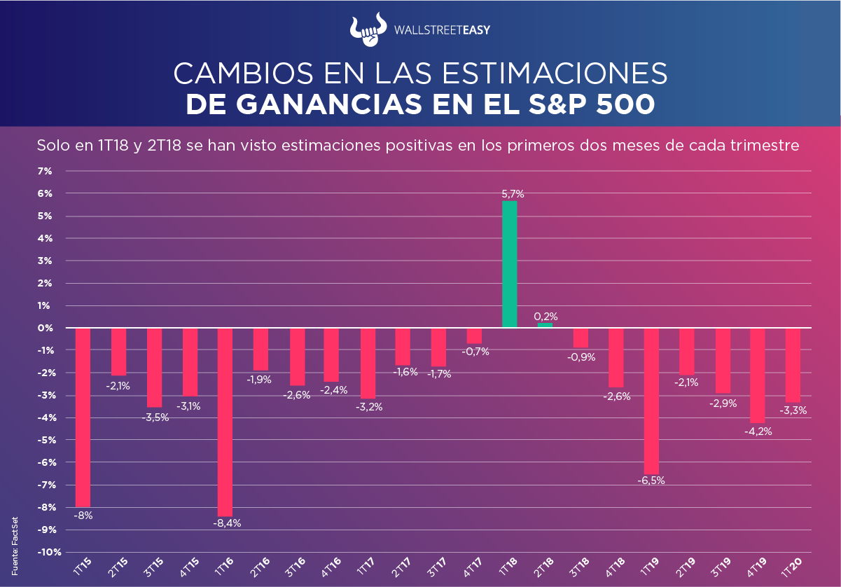 Los analistas han reducido las estimaciones de ganancias durante los primeros dos meses del trimestre para las empresas en el S&P 500, que han visto una caída de 3,3% durante este período.