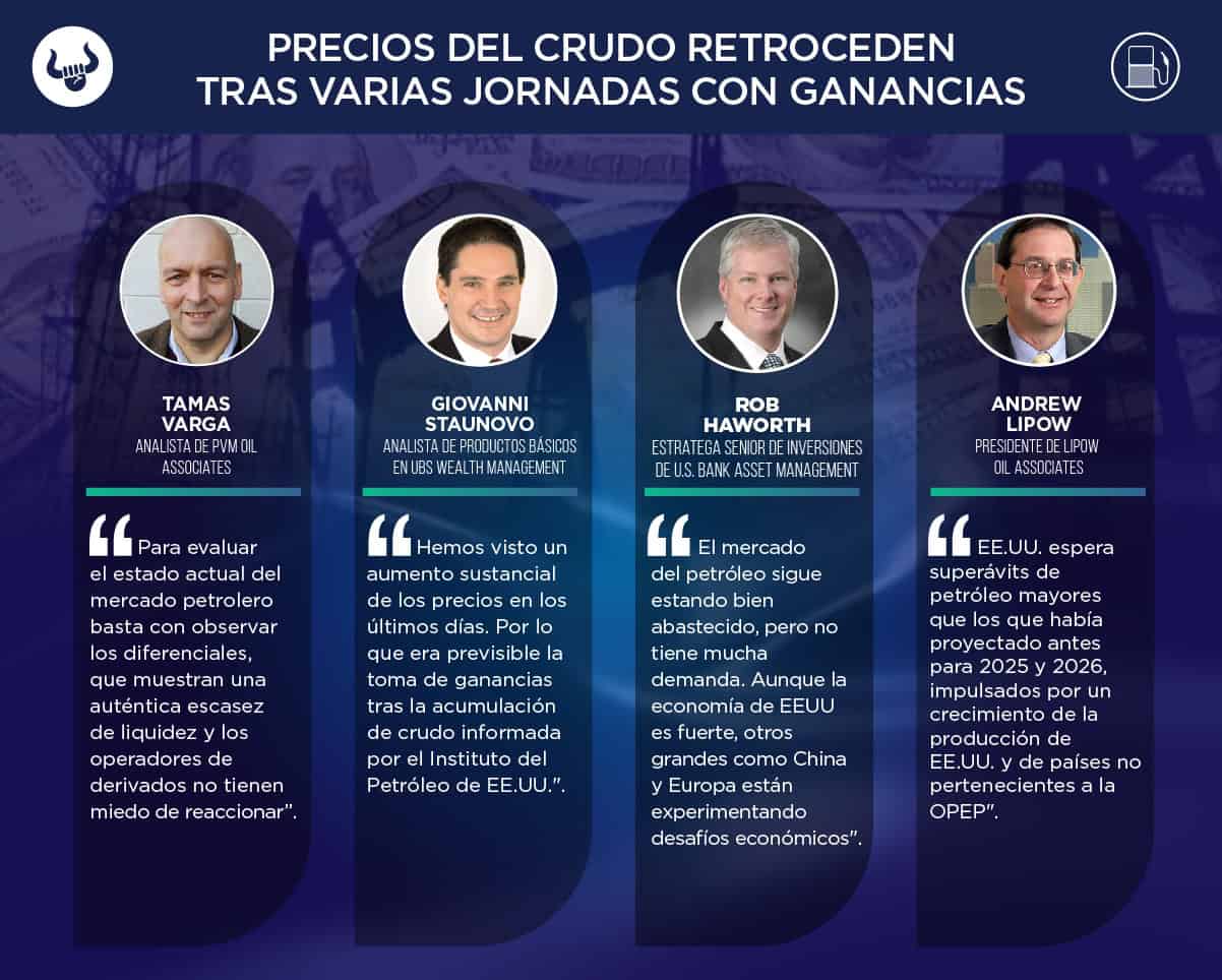 EIA, por sus siglas en inglés) reportó 823,2M de barriles en existencias de crudo, tanto comerciales como estratégicas, lo que representa un aumento de 4,3M de barriles. El Instituto Americano del Petróleo (