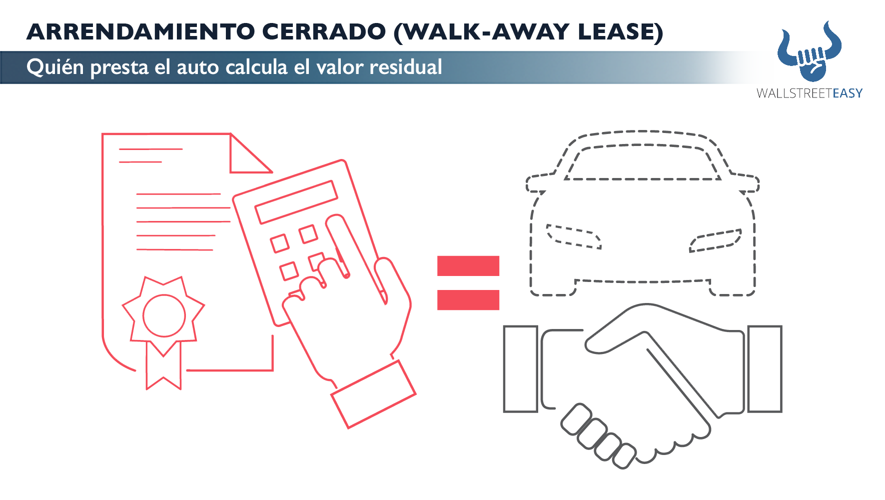 Contrato de arrendamiento de vehículos mediante el cual el prestamista es responsable de calcular cual será el valor residual del vehículo al finalizar el contrato de arrendamiento, tomando en consideración la depreciación derivada del desgaste del carro debido al uso y el paso del tiempo. Con el cálculo del valor residual se establece una cantidad apropiada para cobrar por los pagos de arrendamiento y determina cuánto beneficio gana el prestamista.