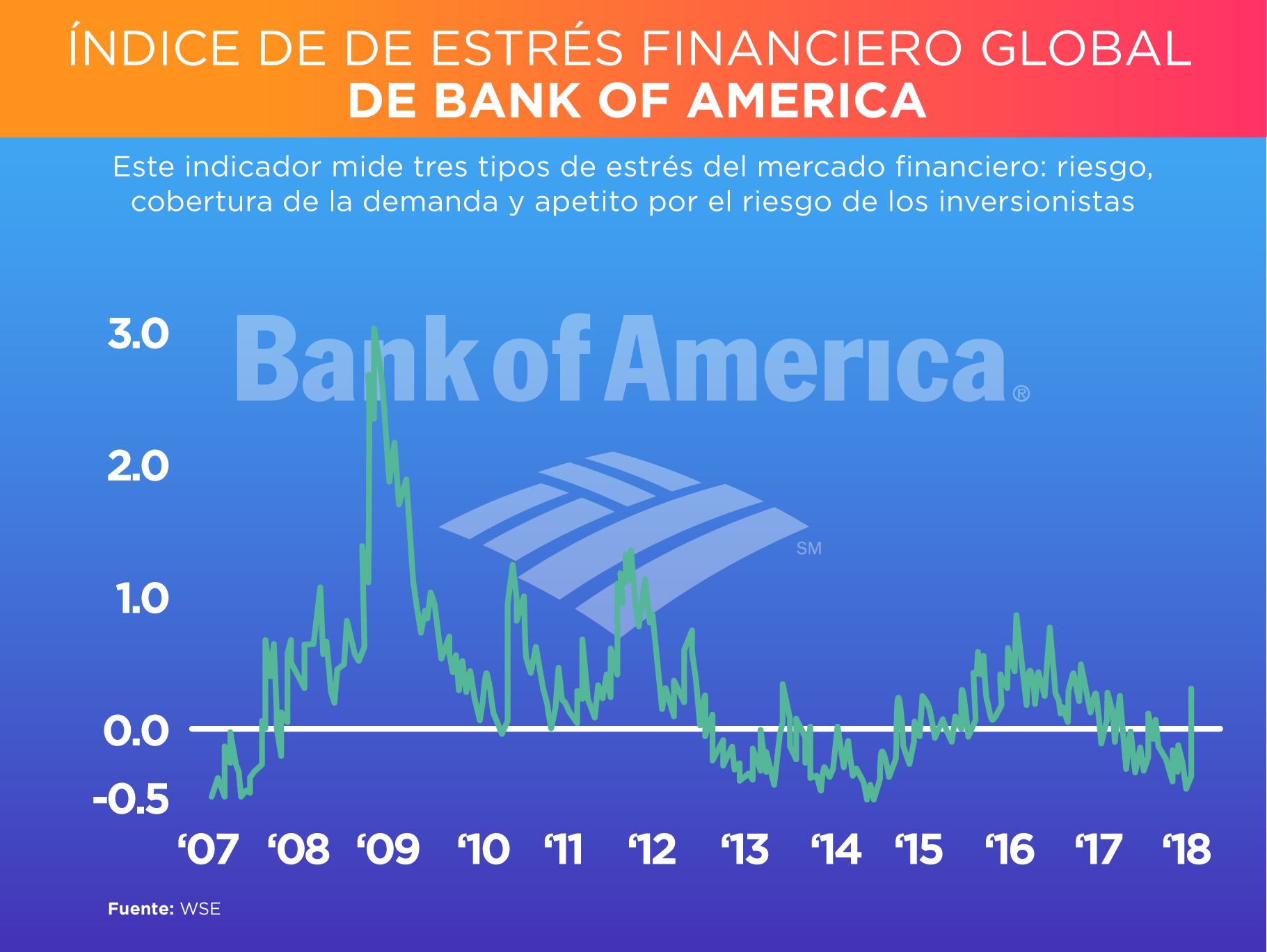 Por otro lado, al observar el índice de estrés financiero global que también publica la institución, vemos que se ha venido elevando durante 2018, lo que complementa las lecturas del índice Bull & Bear.