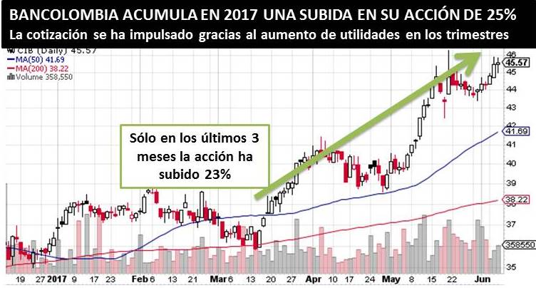 En lo que va de 2017, Bancolombia ($CIB) acumula un crecimiento de +25% debido a sus buenos resultados financieros en los últimos trimestres.