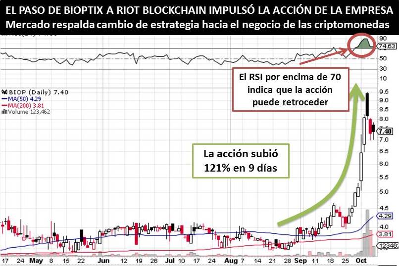 El miércoles 4 de julio, la empresa de biotecnología Biotix (BIOP) comunicó que cambiaría su nombre a Riot Blockchain.