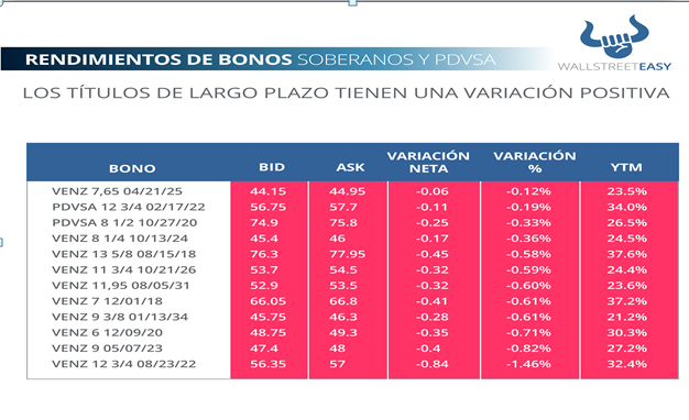 - El VENZ-2018 y el VENZ-2027. El primero con una tasa de 13,625% de muy corto vencimiento y el segundo, con mejor margen para inversionistas, con un cupón de interés de 9,25% a un precio de 53% de su valor facial.