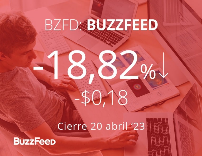 Las acciones de BuzzFeed han caído cerca de -90% desde su salida a bolsa a finales de 2021. Hoy, bajaron más de -18%, cotizando en torno a los 71 céntimos.