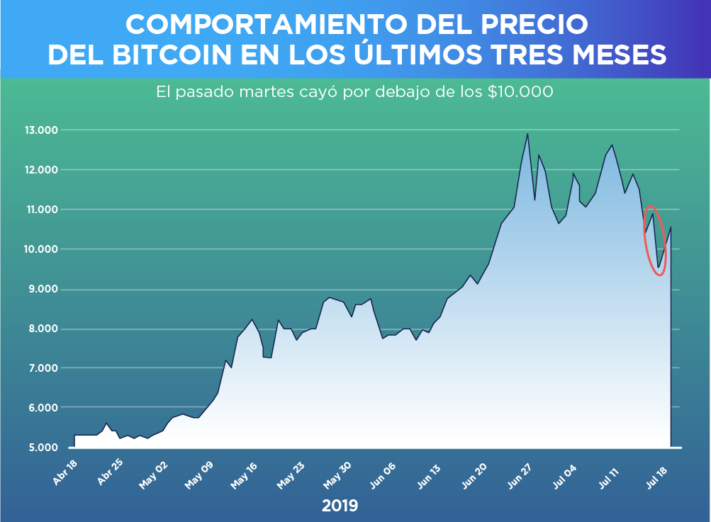 El pasado martes 16 de julio, el precio del bitcoin se desplomó más de 10%, cayendo por debajo de $10.000, después de que Facebook (FB) se presentara ante el Congreso de EEUU para defender su moneda digital, Libra.