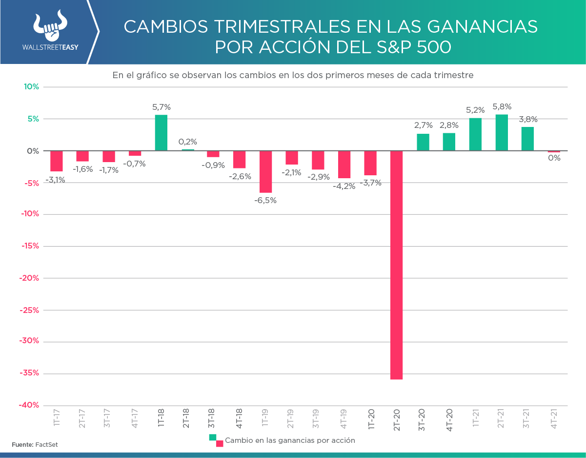 Pero hay algo que ver: el cuarto trimestre marcó la primera vez que la estimación de ganancias por acción no ha aumentado durante los dos primeros meses de un trimestre desde el 2T20 (–35,9%).