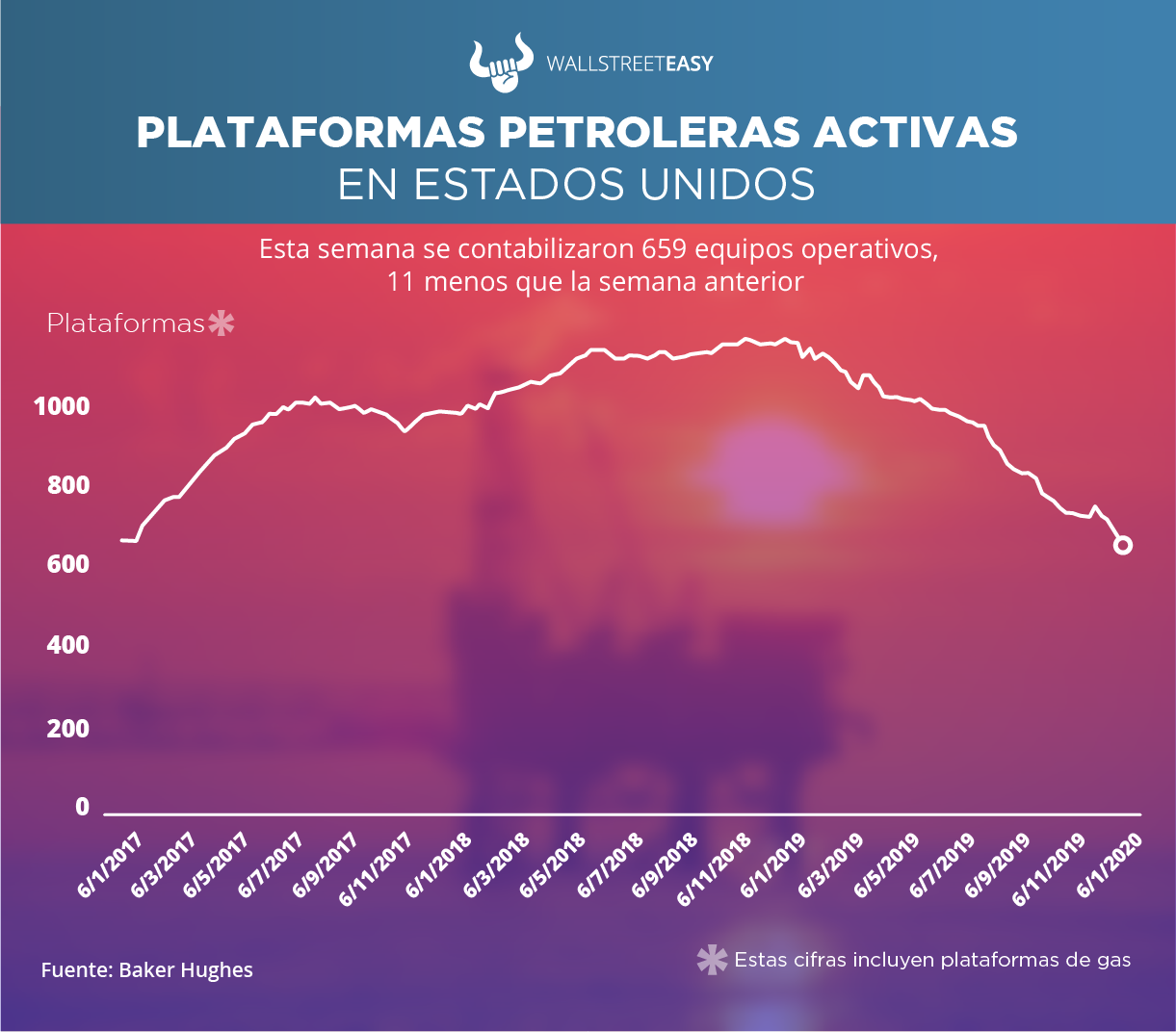 De acuerdo con información de Baker Hughes, actualmente en EEUU se encuentran 781 equipos activos (incluyendo los de gas). En la actividad petrolera se contabilizaron 659, 11 menos que la semana anterior. En las operaciones de gas hay 119 equipos operativos, cuatro menos que hace siete días. Hace un año estaban activas 1075 plataformas.