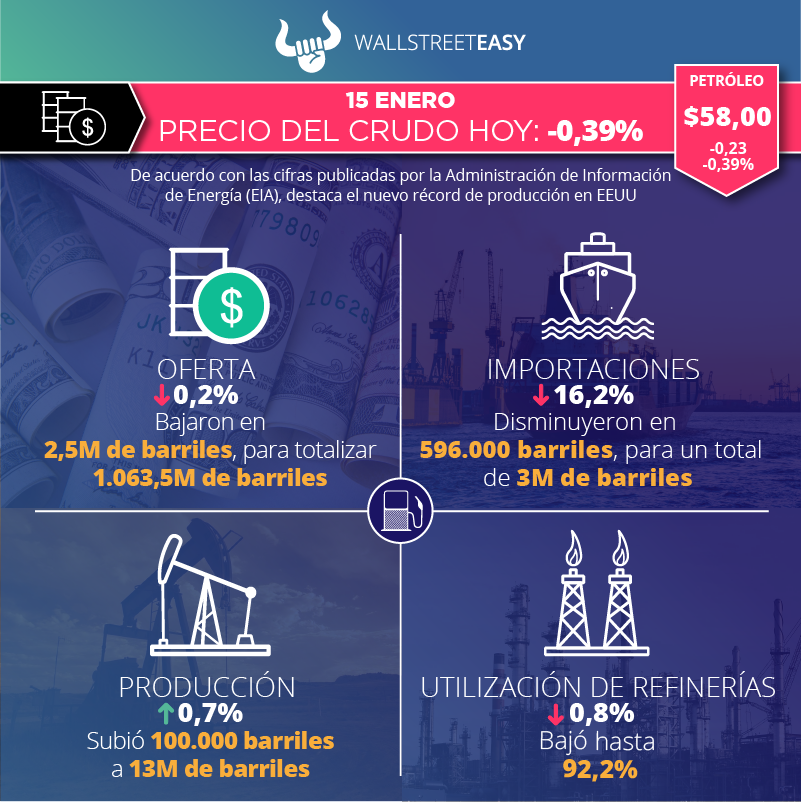 Al cierre de esta edición, el precio del barril bajó hasta $58, lo que representa 0,39% en comparación con el día martes.