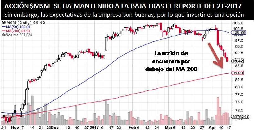 Tras publicar sus resultados del 2T el 6 de abril, uno de los mayores distribuidores de suministros industriales del mundo, Msc Industrial Direct Coh (MSM), ha caído alrededor de 12%.