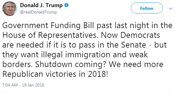 «Lo único que obstaculiza la financiación del gobierno, los recursos para nuestras tropas y la atención médica para los niños en este momento son los demócratas del Senado. La cárama de Representantes hizo lo correcto» – aseveró en un comunicado Paul Ryan, Presidente de la Cámara de Representantes