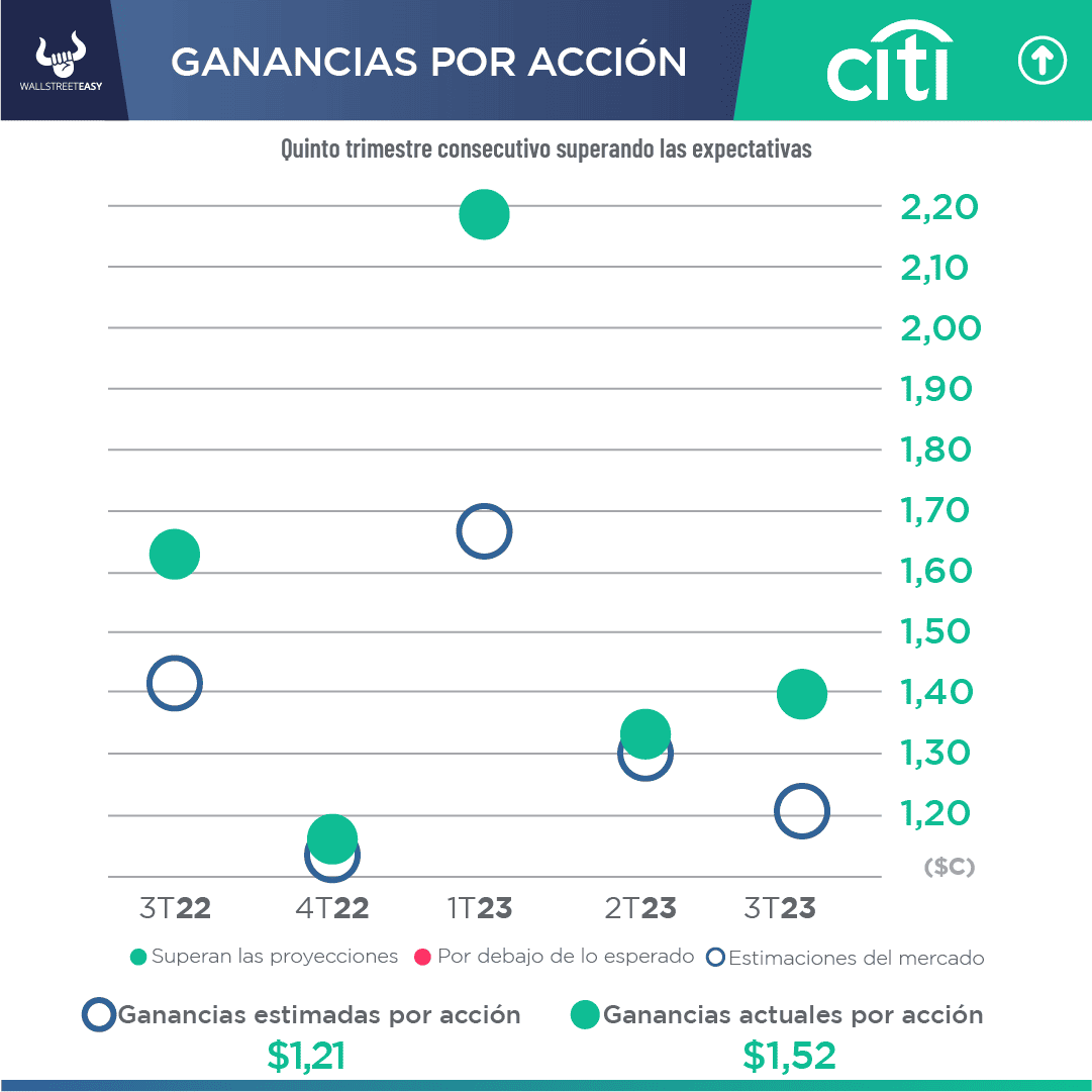 - Los ingresos de Citigroup subieron +9% año tras año.