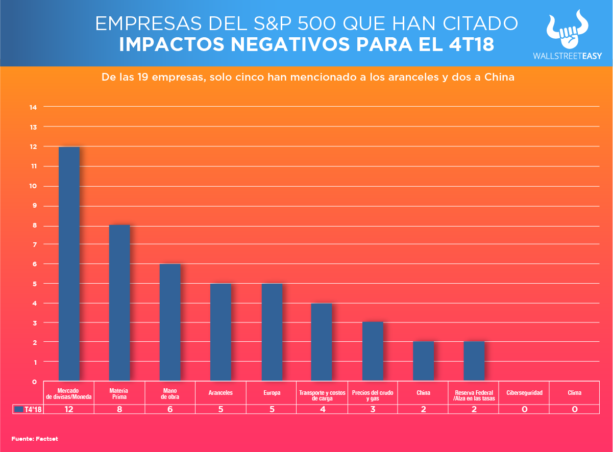 Debido a las preocupaciones en el mercado (particularmente en el conflicto EEUU-China), FactSet realizó una investigación en las transcripciones de la conferencia telefónica de las empresas que mostraron sus resultados del 4T18: