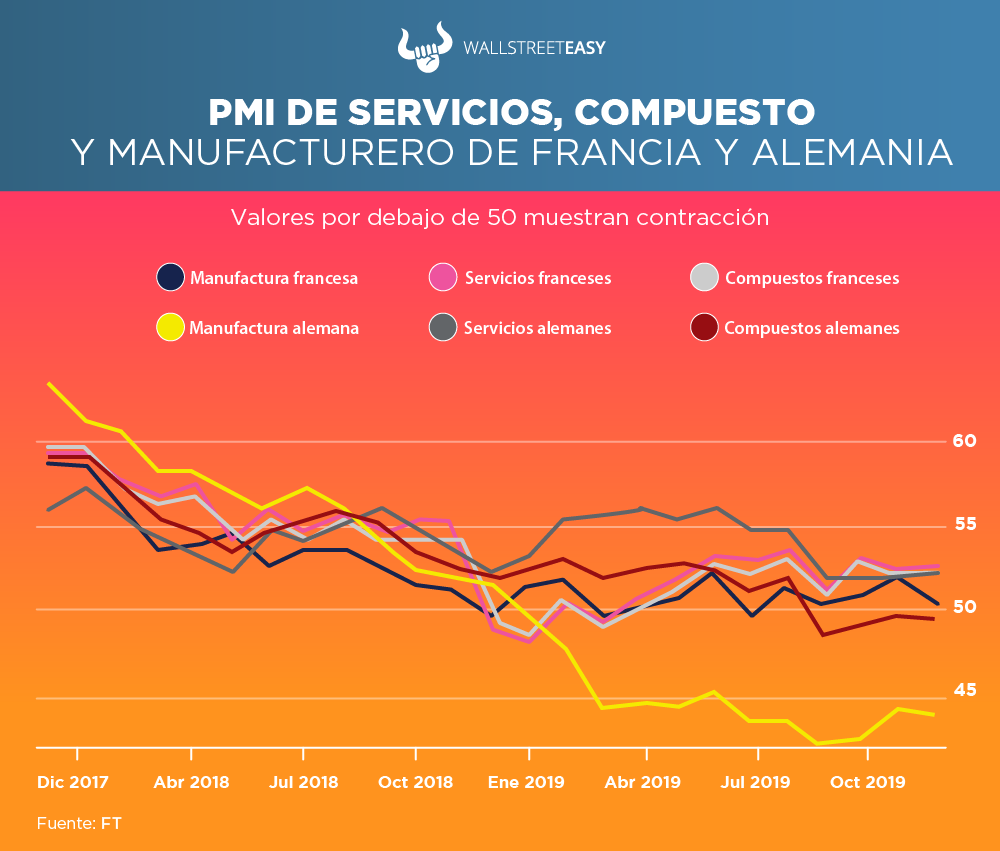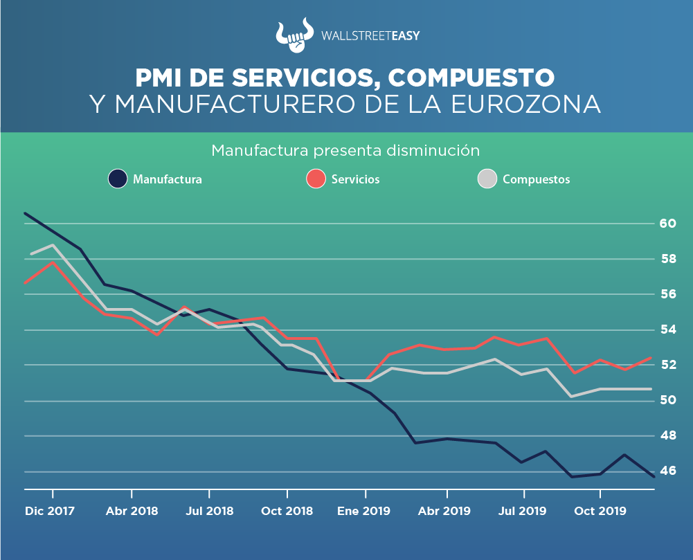 A pesar de esto, el PMI manufacturero aún se mantiene por encima de su nivel más bajo tocado en septiembre. Esto viene como consecuencia de la contracción en la actividad manufacturera alemana, el mayor productor manufacturero en la zona euro. El dato de enero mostrará si la tendencia continúa o si solo fue una pequeña corrección.