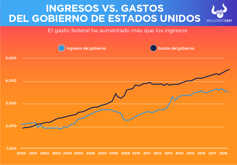 De acuerdo con datos revelados por el Departamento del Tesoro, los gastos del gobierno se incrementaron +3,2% en el año fiscal 2018, en relación a solo un incremento de +0,4% de los ingresos gubernamentales. Ya que el déficit corresponde a una situación donde los gastos son mayores que los ingresos, con estos números es normal que la brecha se haya hecho más grande.