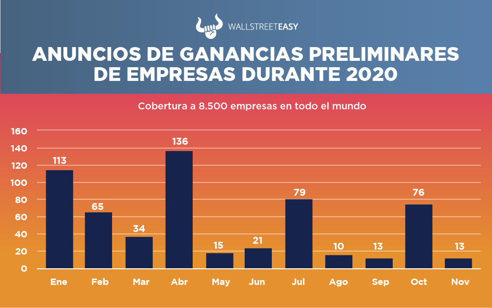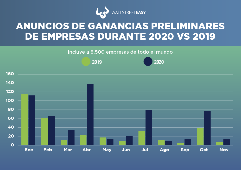 Según data proporcionada por la firma de investigación Factset, en abril de este año (inicio del apogeo de la pandemia en EEUU) se marcó el nivel más alto de anuncios preliminares de ganancias de empresas de todo el mundo.