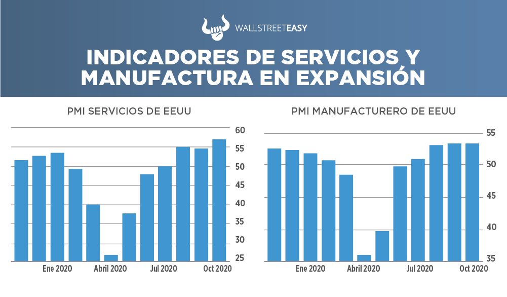 Los datos de creación de empleo de octubre estuvieron por encima de las estimaciones, lo que combinado con una caída de la tasa de desempleo y el aumento de la tasa de participación laboral, generó que la confianza del consumidor se mantuviese y que los indicadores de manufactura y servicios tuvieran lecturas por encima de 50 lo que significa que continúan en expansión.