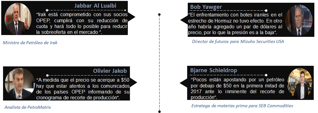 - El 5 de enero Irak informó que empezó a implementar medidas para ajustarse a lo acordado por la OPEP, reduciendo su producción en 200.000 barriles diarios.