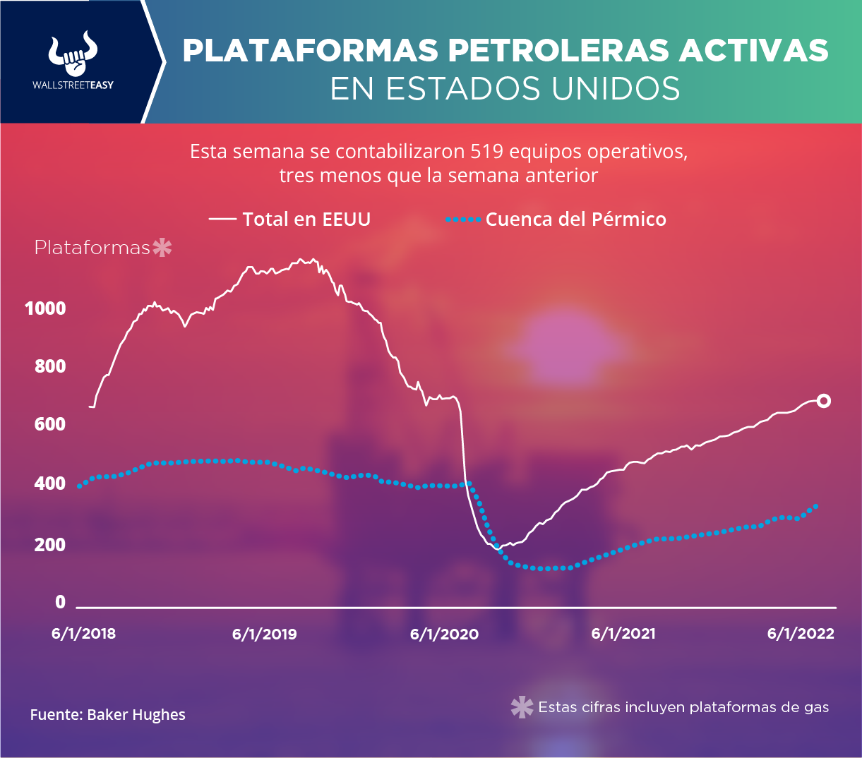 De acuerdo con información de Baker Hughes, actualmente en EEUU se encuentran 650 equipos activos (incluyendo los de gas). En la actividad petrolera se contabilizaron 519, tres menos que la semana anterior. En las operaciones de gas hay 130 equipos operativos, tres más que hace siete días. Hace un año estaban activas 403 plataformas.