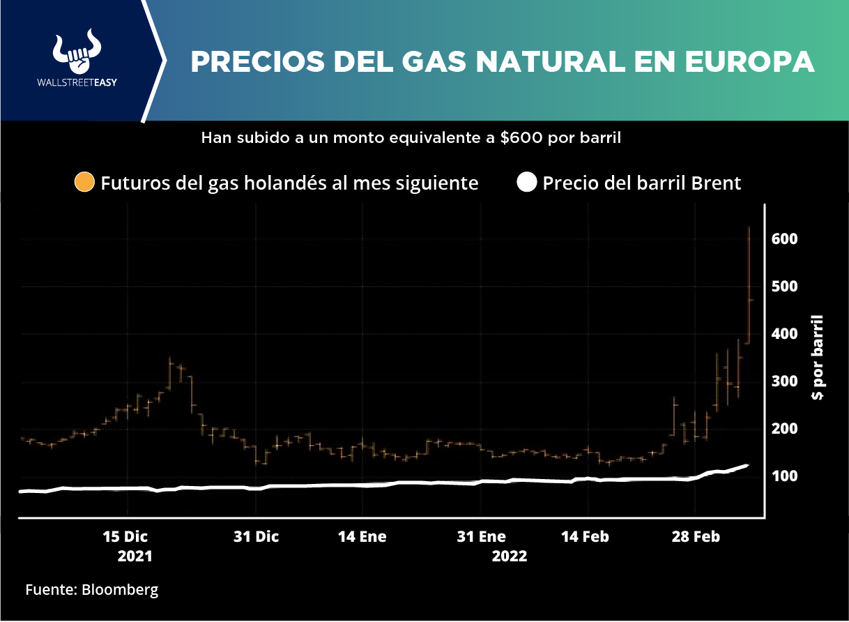 - Los precios del gas al contado han alcanzado niveles sin precedentes por el temor a que las sanciones contra Rusia, que representa el 40% del total de las importaciones, dejen sin suministro la demanda de gas natural del continente.