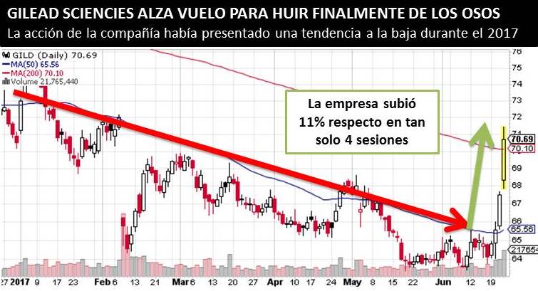 GILD la coloca con un crecimiento de 1% desde inicios de 2017, con una tendencia que es un reflejo del índice de biotecnología, el cual subió 10% en las últimas 4 sesiones.