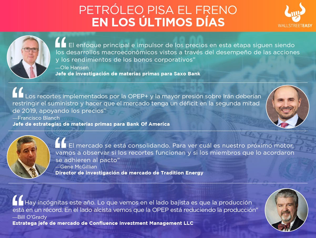 - Después de alcanzar un máximo de dos meses en los últimos días, los precios del petróleo han tomado un respiro ante las renovadas preocupaciones de desaceleración económica en general, y en China en particular. El lunes, el país asiático reportó su tasa de crecimiento del PIB de 2018 en 6,6%, la más débil en casi tres décadas.