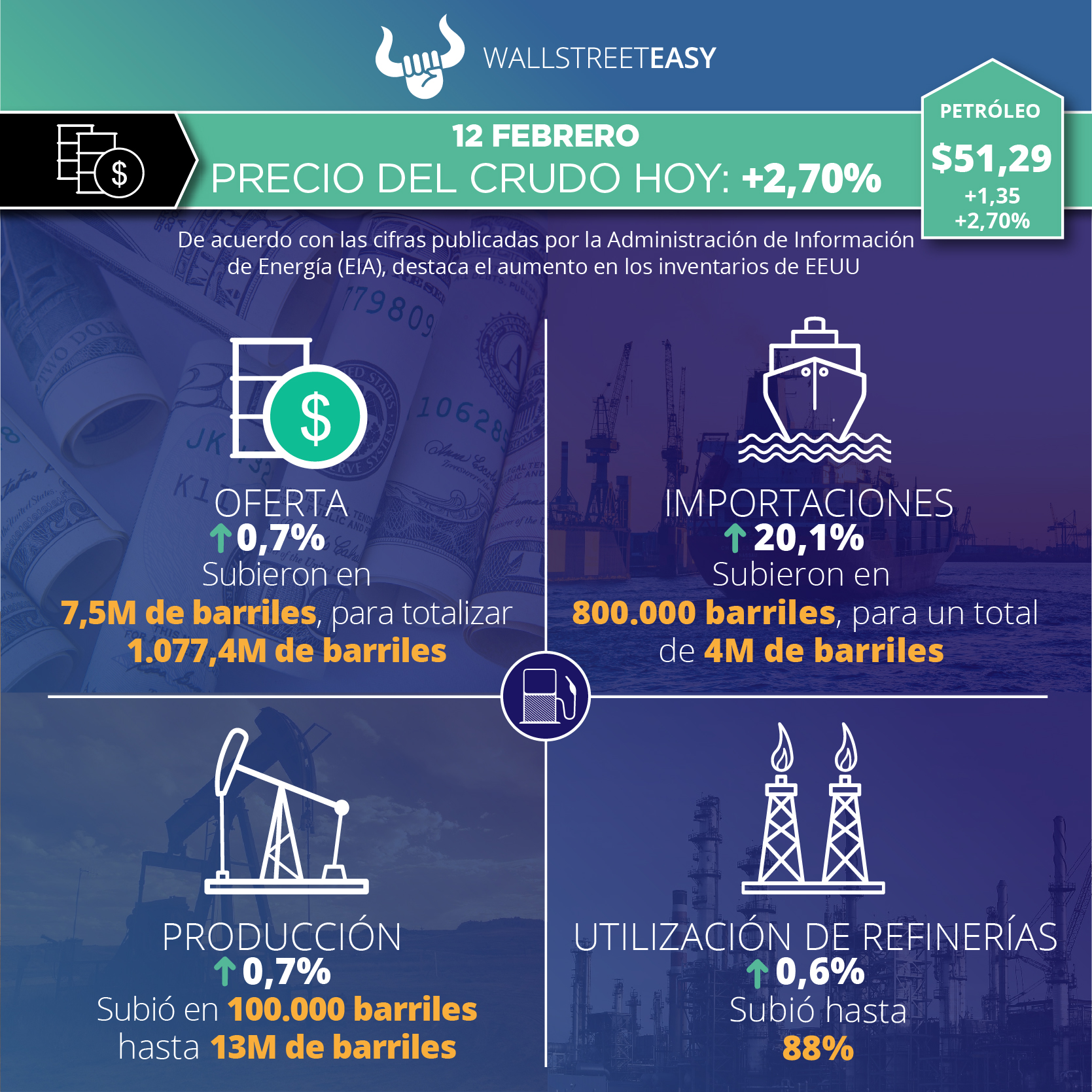 La Administración de Información de Energía (EIA, por sus siglas en inglés) reportó 1.077,4M de barriles en existencias de crudo, tanto comerciales como estratégicas, lo que representa un aumento de 7,5M de barriles. El Instituto Americano del Petróleo (API, por sus siglas en inglés) había estimado un aumento de 6M de barriles. A continuación, otros datos relevantes del informe: