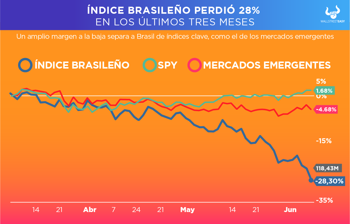 El índice brasileño perdió 28% de su valor en los últimos tres meses, cifra preocupante frente al índice de mercados emergentes y el S&P 500.