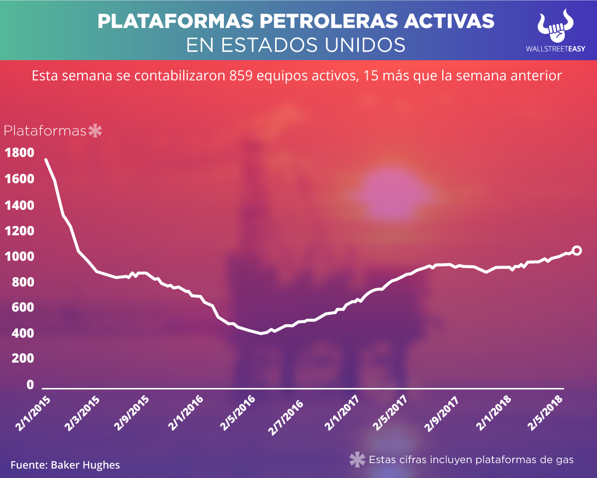 De acuerdo con información de Baker Hughes, actualmente en EEUU se encuentran 1.059 equipos activos (incluyendo los de gas). En la actividad petrolera se contabilizaron 859, un incremento de 15 respecto a la semana anterior. Hace un año estaban activas un total de 908 plataformas.
