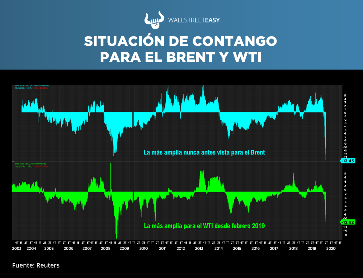 - Los futuros del Brent de mayo y noviembre alcanzaron su mayor diferencial en $13,45 por barril, situación nunca antes vista para este crudo.