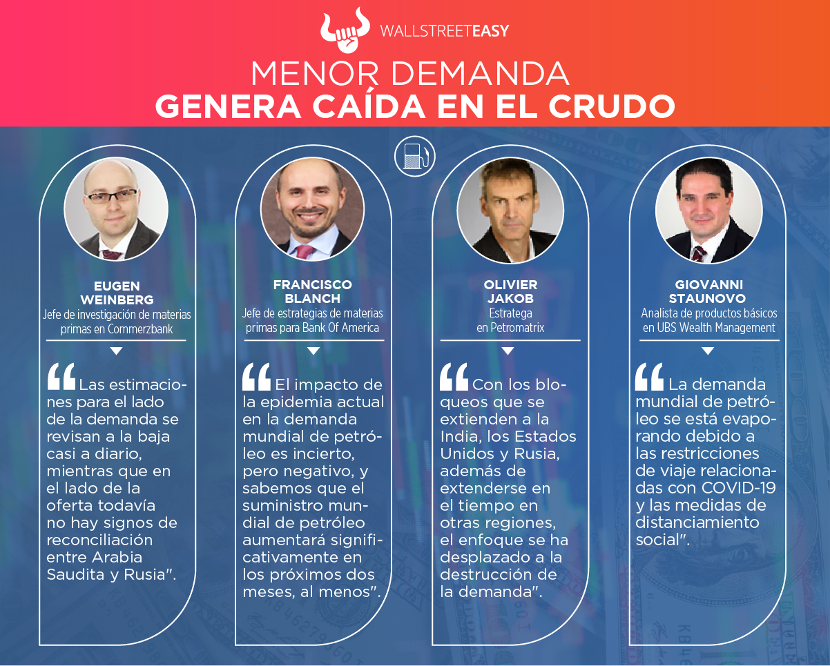 - La demanda mundial de petróleo podría caer en más de 20M bpd, y las previsiones del mercado continúan viendo revisiones diarias.