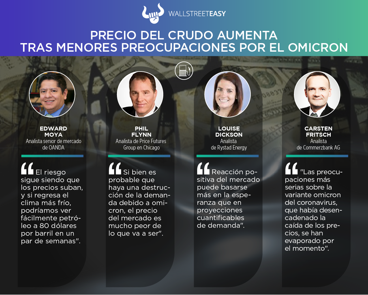 - Las preocupaciones por la variante omicron se están desvaneciendo tras informes médicos que muestran síntomas más leves de lo anticipado, lo que hace que los temores de la demanda disminuyan al comienzo de esta semana.