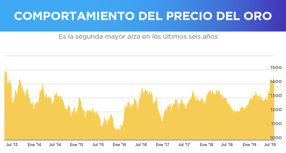En medio de crecientes preocupaciones sobre la guerra comercial de EEUU con China, las tensiones en Medio Oriente y el Brexit, el precio del oro han alcanzado su valor más alto en seis años, pero las fuertes expectativas de un recorte de tasas de interés por parte de la FED también han contribuido en gran manera a dicho incremento.