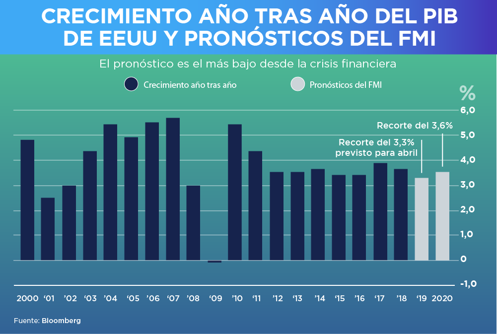 Las preocupaciones sobre el tibio crecimiento económico han llevado a los bancos centrales de todo el mundo a revisar su postura sobre la política monetaria. El Fondo Monetario Internacional (FMI) redujo el martes su pronóstico para el crecimiento mundial de 2019 y 2020, comentando que el conflicto comercial entre EEUU y China, aranceles de EEUU a los automóviles o el Brexit, podrían debilitar la inversión, desarticular las cadenas de suministros y ralentizar aún más el crecimiento.