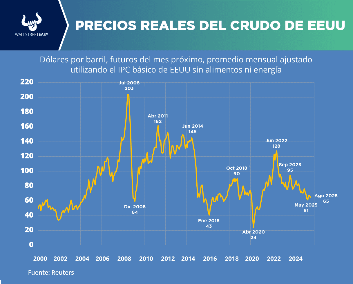 LA NOTICIA Los futuros del Brent para el mes más cercano han registrado un promedio de $70 por barril en lo que va de 2025, frente a los $82 de 2024, y el nivel más bajo desde la pandemia de 2020 ($53) y la guerra de volúmenes de 2016 ($60). DAME CONTEXTO Los precios han caído este año en parte porque el conflicto arancelario entre EEUU y sus socios comerciales ha frenado el gasto empresarial y de los consumidores y el consumo de petróleo asociado. A pesar de la caída de los precios, la OPEP+ ha aumentado la producción revirtiendo el último tramo de recortes anunciado en noviembre de 2023 con un calendario acelerado, lo que ha intensificado la presión a la baja. ¿ALGÚN ACONTECIMIENTO ADICIONAL? «Las decisiones de la OPEP+ siempre han implicado algún tipo de equilibrio entre múltiples objetivos en entornos muy inciertos y sujetos a una serie de restricciones», según analistas entrevistados por Reuters. En este contexto, Arabia Saudita y sus socios de la OPEP+ parecen haber ajustado su prioridad de proteger los precios a frenar una mayor erosión de la cuota de mercado. EN SÍNTESIS Los precios de los futuros ya se han reducido a un nivel en el que es probable que haya poco o ningún crecimiento adicional en la producción de los productores de esquisto estadounidenses:
