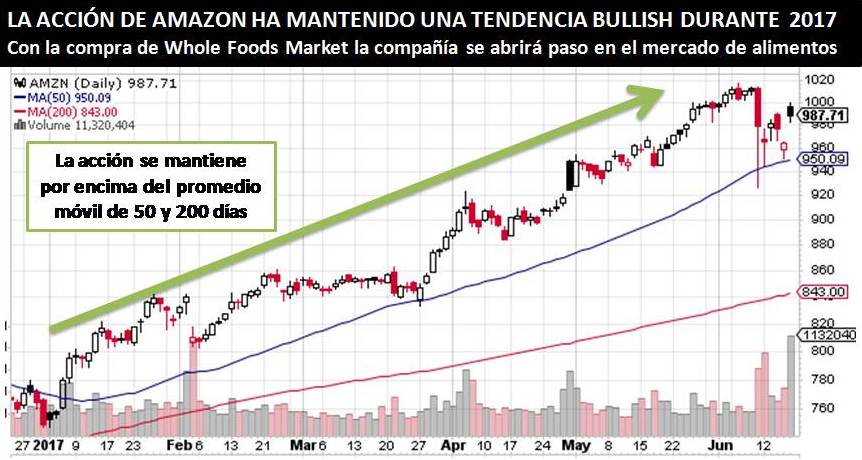 El viernes 16 de junio, Amazon anunció la adquisición de la cadena de supermercados estadounidense Whole Foods Market por $13,7 millardos o $42 por acción.