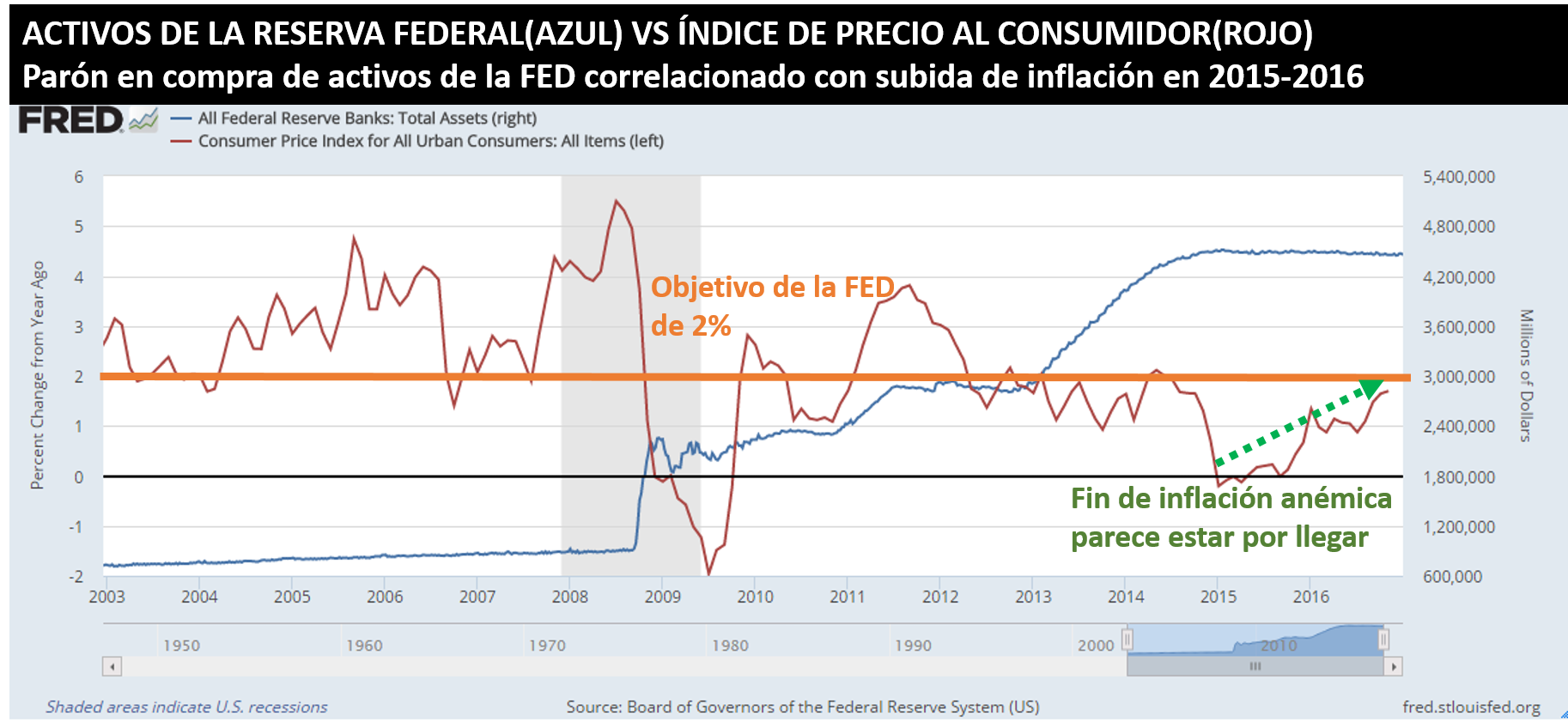 Una inflación por encima de 2% es el incentivo necesario para que las empresas inviertan en tecnologías que mejoren los procesos en orden de reducir costos. Las tasas de interés bajas no han logrado estimular la inflación a corto plazo como muchos esperaban, pero la tendencia empieza a mostrar que, finalmente, la economía está respondiendo en este departamento.