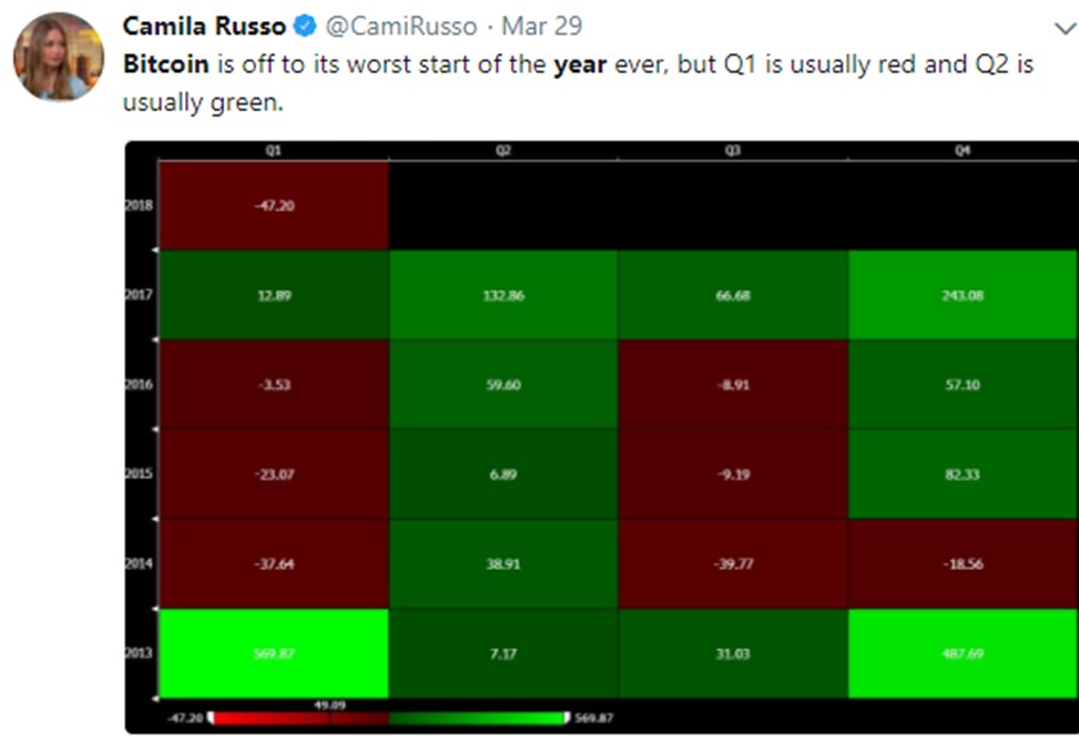 Cuando marzo terminó también puso fin al peor primer trimestre de la historia del Bitcoin, y a partir de ahora comienza lo que los expertos en criptomonedas consideran como los tres mejores meses para esta divisa digital.