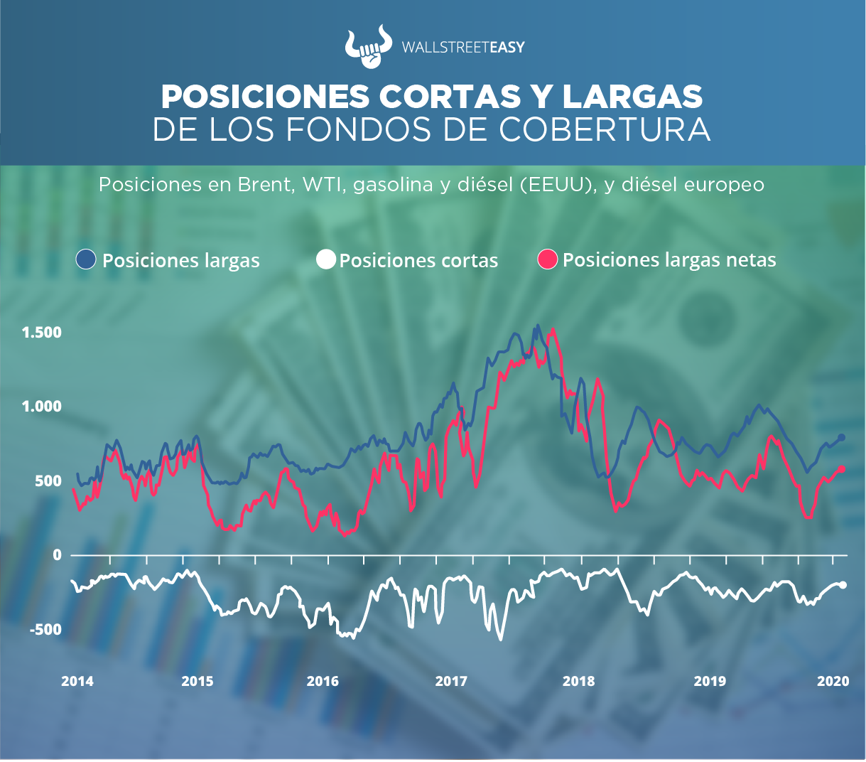 Las compras de la semana pasada fueron las menores en nueve semanas, lo que indica que la ola de compras puede estar desapareciendo. Los cambios de posición fueron en su mayoría insignificantes, con las compras de NYMEX e ICE WTI (+7M de barriles) y gasoil europeo (+8M), y ventas de Brent (-2M) y gasolina estadounidense (-8M), sin ningún cambio en el diésel de EEUU.