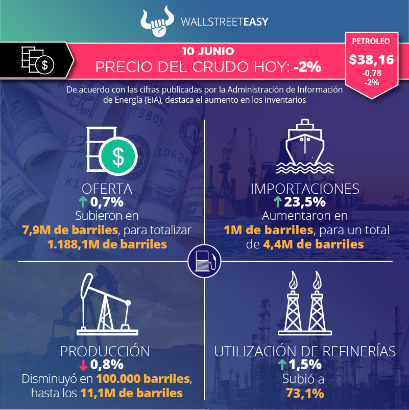 Al cierre de esta edición, el precio del barril bajó hasta $38,16, lo que representa –2% en comparación con el día martes.
