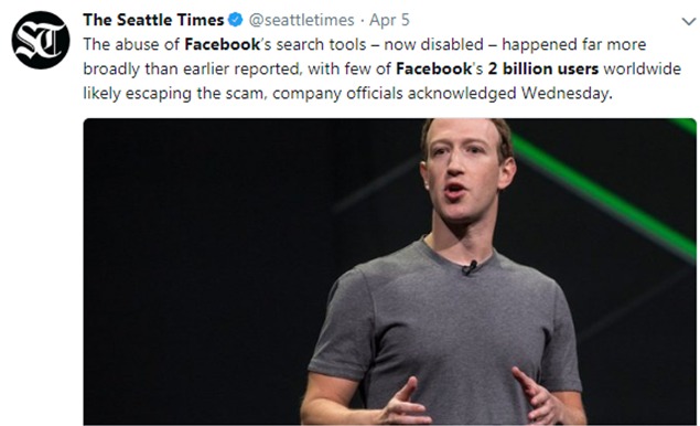 «Es razonable esperar que si ha tenido esa configuración en los últimos años, alguien haya accedido a su información», dijo el gerente general de la compañía, Mark Zuckerberg, en relación a una función de búsqueda de su sitio que permitió que los datos de usuarios se comprometieran