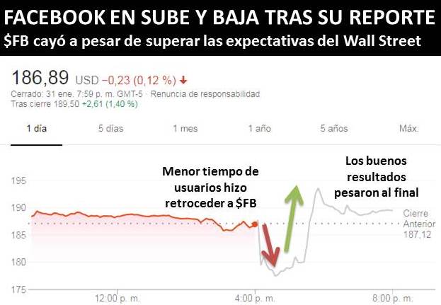 La noticia del menor tiempo de usuarios en la plataforma, así como la orden que le dio un jurado de Texas a Facebook de pagar, junto a otros acusados, $500 millones a la firma de videojuegos Zenimax Media por un supuesto robo de tecnología, hizo retroceder la acción después del cierre, aunque horas después se recuperó.