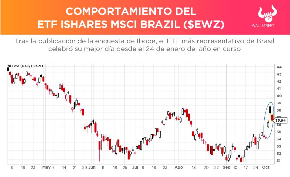 Estos números agradaron al mercado, como pudo observarse en las subidas de +3,78% y +5,64% que presentaron el índice Bovespa (índice bursátil de referencia en Brazil) y el ETF iShares MSCI Brazil, respectivamente, cuando la encuestadora publicó sus resultados.