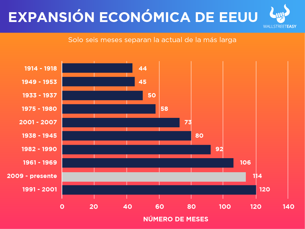 La expansión económica actual en EEUU está a tan solo siete meses de superar la presentada en la década de los noventa, por el boom tecnológico y la adopción de Internet, para ubicarse como la más larga del país.