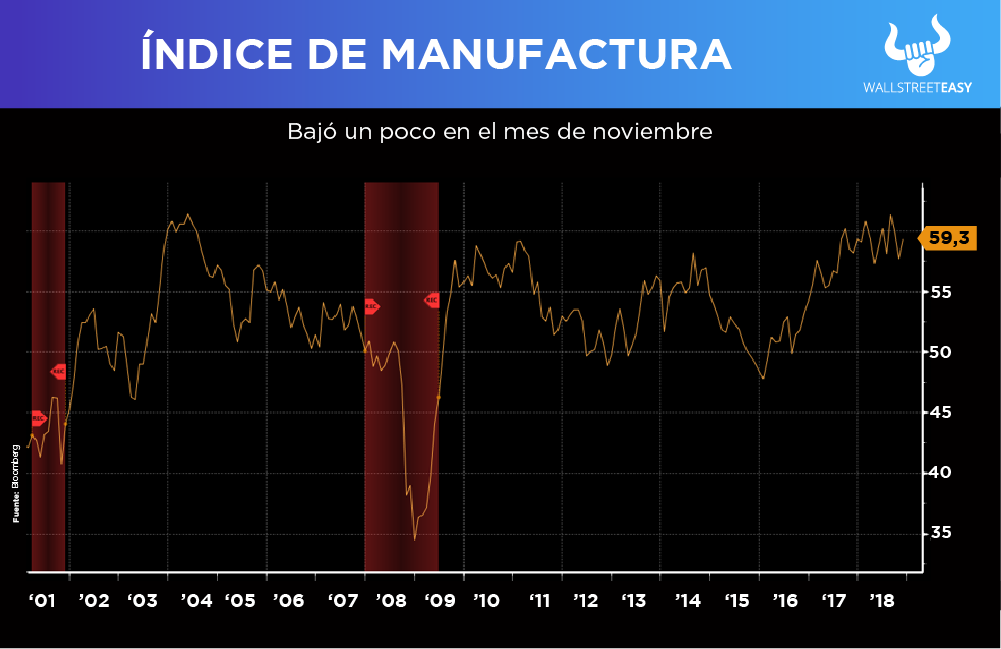 Tenemos el índice de Gestores de Compras (encuesta realizada a los gestores de las empresas más importantes del país), el cual ha bajado ligeramente en los últimos meses, pero aún sin ubicarse en niveles de debilidad; de hecho, en noviembre experimentó un pequeño repunte.