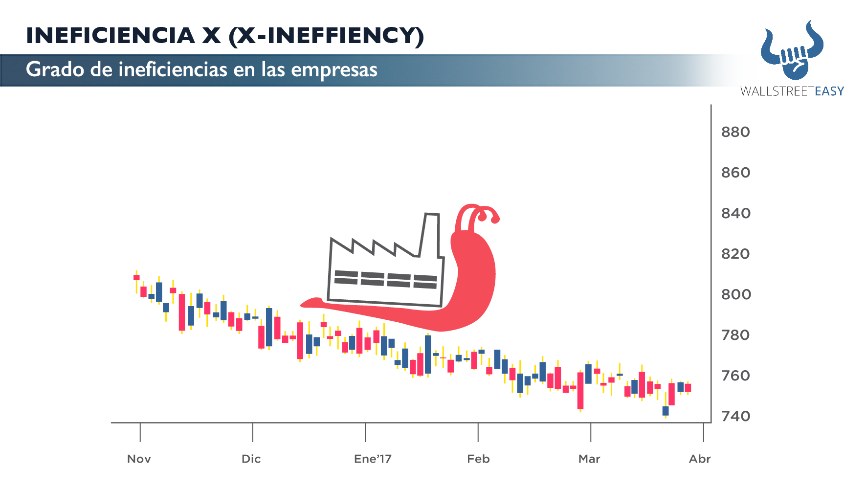 La diferencia que existe entre la eficiencia que en teoría una empresa debe tener y la que realmente tiene debido a la falta de competencia del mercado.
