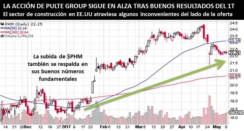 En lo que va de 2017, la cotización de la acción de la empresa de construcción de viviendas en EE.UU., PulteGroup (PHM), ha subido 22% a pesar del panorama negativo del sector.