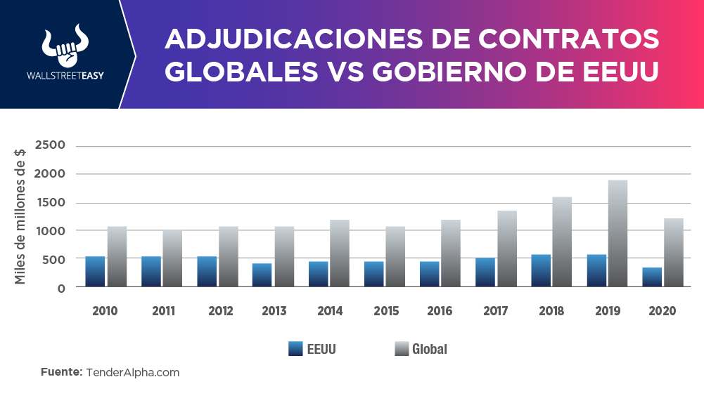 Los datos de contratación del gobierno global disponibles a través de FactSet Marketplace, monitorean las adjudicaciones de contratos en más de 40 países y representa casi $15B de gasto público desde 2010. Según esa base de datos, casi el 40% de los contratos en los países desarrollados se adjudican a menos de 8.000 empresas que cotizan en bolsa. Las contrataciones federales de EEUU por sí solas representan más de $500.000 millones al año en promedio.